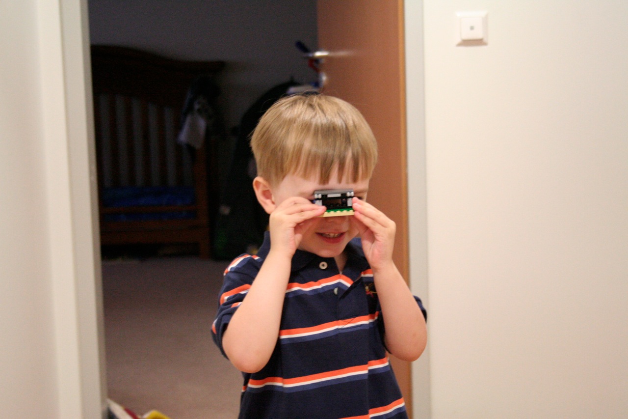 Paul has a growing collection of LEGOs; a childhood staple for kids since prehistoric times. His consist of an assortment of basic building blocks, and some of the Star Wars kits (of course). While the Star Wars kits don’t usually lend themselves to a lot of creative building at this point, he’s always playing out scenes from the movies as well as new scenes from his own imagination. Every now and then, the custom parts do lend themselves to something entirely not Star Wars related. The basic building blocks, however, offer his young mind a clean slate. Like kids everywhere, if he can imagine it, he can try to build it. The first time he did this with any real accuracy and success was when he built himself a tiny camera, complete with viewfinder and a button to push to take the picture.