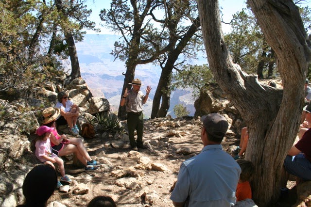 We didn’t descent from the rim during the trip, but you can’t help but admire the views whether it’s your first visit or not. The scale of the Canyon is almost inconceivable. One of the best things about the trip itself was the US National Park Service’s “Junior Ranger” program. When we checked in at the Visitor’s Center, they provided me a book for him with a number of educational requirements that had to be met to earn a Junior Ranger certificate and badge. Needless to say, Paul was excited as we showed him the book. Activities were based on the age of the child and broken into categories named after different animals. For his age, he had to attend at least one presentation by a Ranger, write and draw what he learned from the presentation, and complete four other tasks oriented toward focusing a child his age on aspects of nature and the Canyon itself. We ended up attending two Ranger presentations.