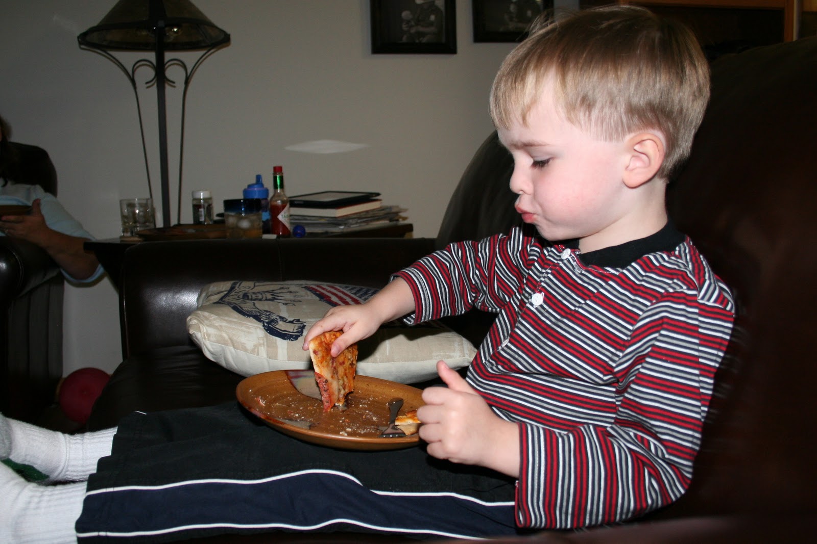 One of the things I love most about being a dad so far is watching my son’s imagination develop. I try to encourage it. The results at times have sprung out of the blue when some crazy, cool new demonstration of imagination just appears. The other night Steph and I were eating pizza for dinner and decided to sit in the living room instead of at the table to catch a show we rarely get to see. Suddenly Paul starts humming music from the Star Wars movie “Return of the Jedi.” The tune was from the scene when the Imperial Dreadnought “Executor,” crippled by a rebel Y-Wing, crashes into the unfinished second Death Star. We looked up and his slice of pizza had become the Dreadnought and his plate was the Death Star. But this wasn’t our imagination interpreting what he was doing; we asked him and he told us, “it’s crashing into the Death Star!” Thankfully the camera was handy.