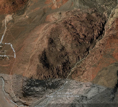 In the Google Earth image, we parked on the left side near the intersection of Sandstone and Kraft Mountain Loop, then started counterclockwise around the peak. You can see the trail circle the mountain, then cut up and over, circling around the top of the image and back toward where we parked. At the start, most of the trail was relatively flat, with elevation changes happening gradually. The scenery was awesome and we made our way about half way around the peak on a trail that varied between powdery sand and gravel.